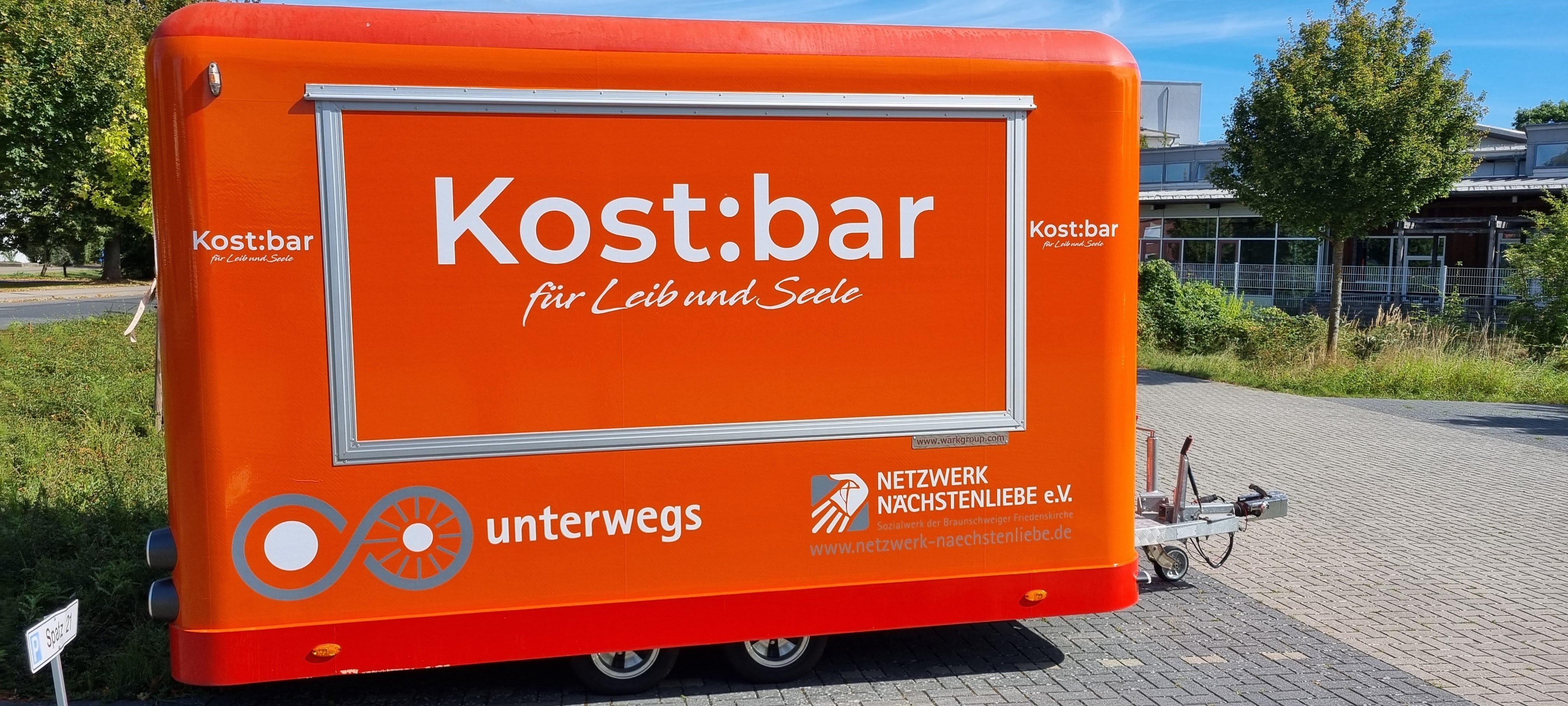 Einmal pro Woche fährt unser Ehrenamtlichen-Team mit unserem markant orangenen "Kost:bar" Food-Trailer los, um warme Speisen und Getränke an Menschen in der Wohnungslosen- und Drogenszene auszugeben.